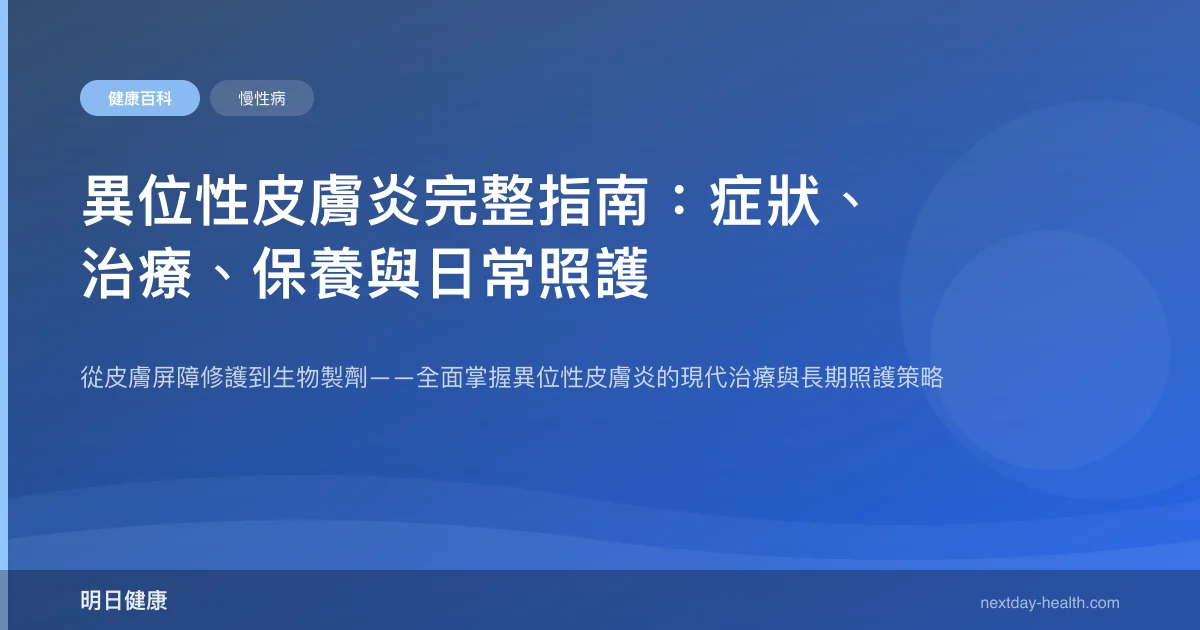 - 夜間搔癢嚴重時,醫師可能短期處方抗組織胺(如 hydroxyzine)幫助入睡,但抗組織胺對異位性皮膚炎的搔癢本身效果有限(因 AD 搔癢非組織胺主導)