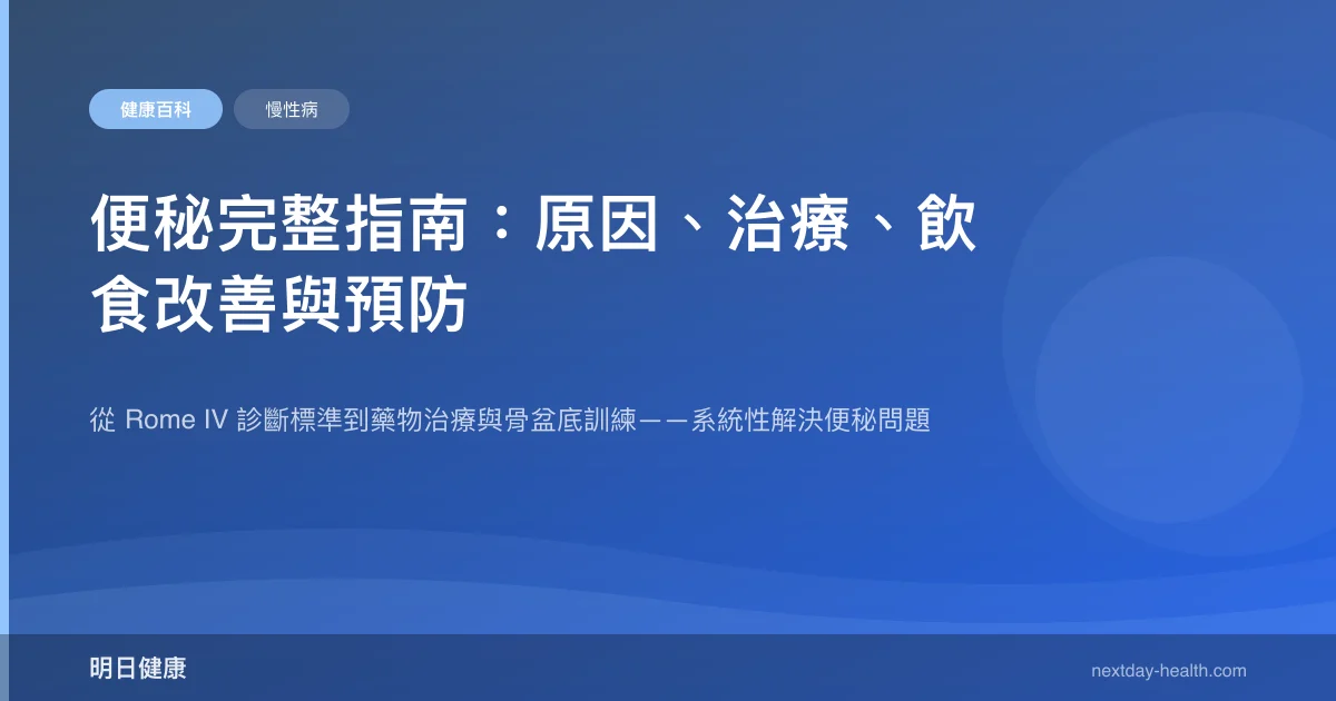 - 聚乙二醇(PEG / Macrogol):每日 1-2 包溶於水中,透過滲透壓將水分留在腸腔。ACG/AGA 強烈推薦,長期使用安全