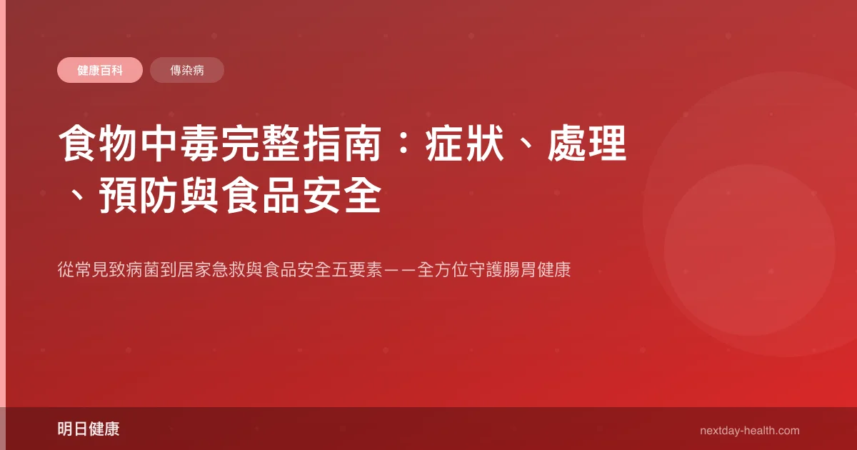 本指南主要聚焦於最常見的細菌性食物中毒,涵蓋致病菌辨識、症狀處理、脫水急救和食品安全預防。