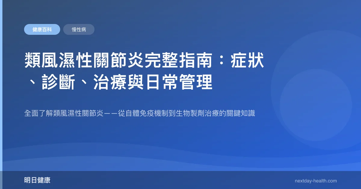 類風濕性關節炎(Rheumatoid Arthritis, RA)是一種慢性、全身性的自體免疫疾病,主要侵犯關節滑膜,導致持續性發炎、關節破壞和功能障礙。