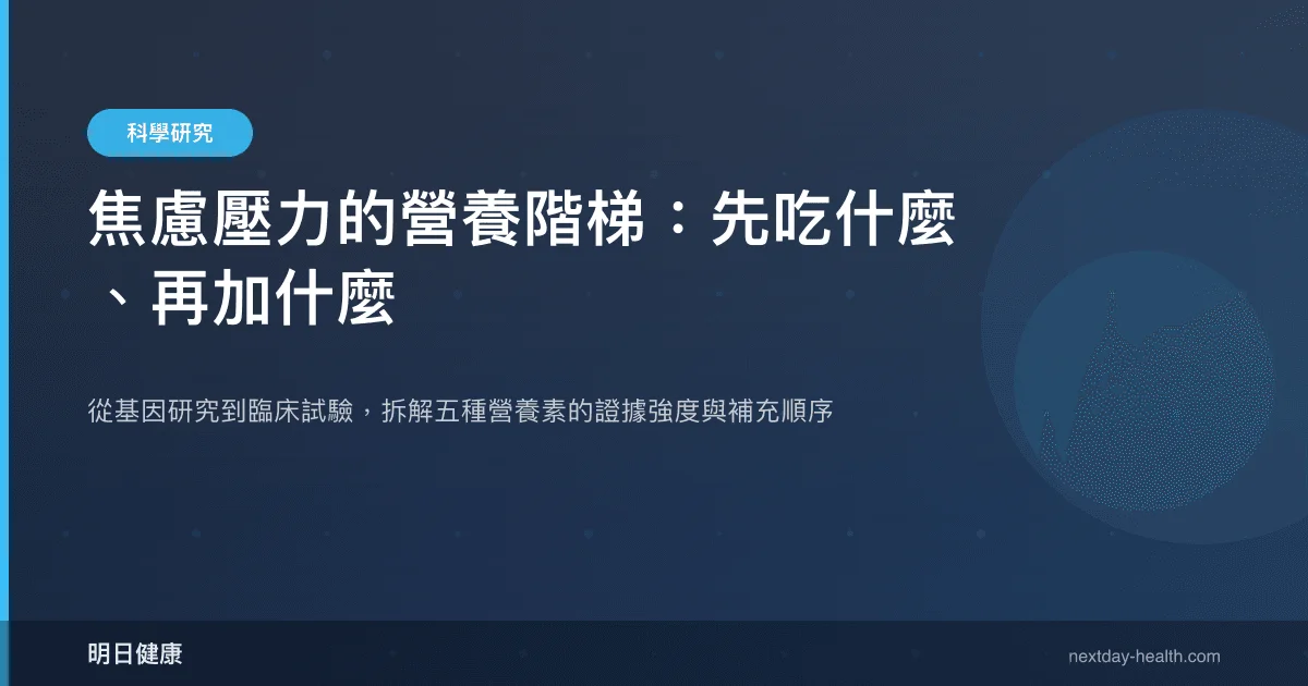 Omega-3 與焦慮的直接關聯在本批文獻中並無 RCT 級證據,但其抗發炎機制與整體代謝健康的改善,為壓力管理提供了間接支持。將 Omega-3 定位為營養階梯的「基礎層補充」而非焦慮專項介入,是較為實事求是的詮釋。