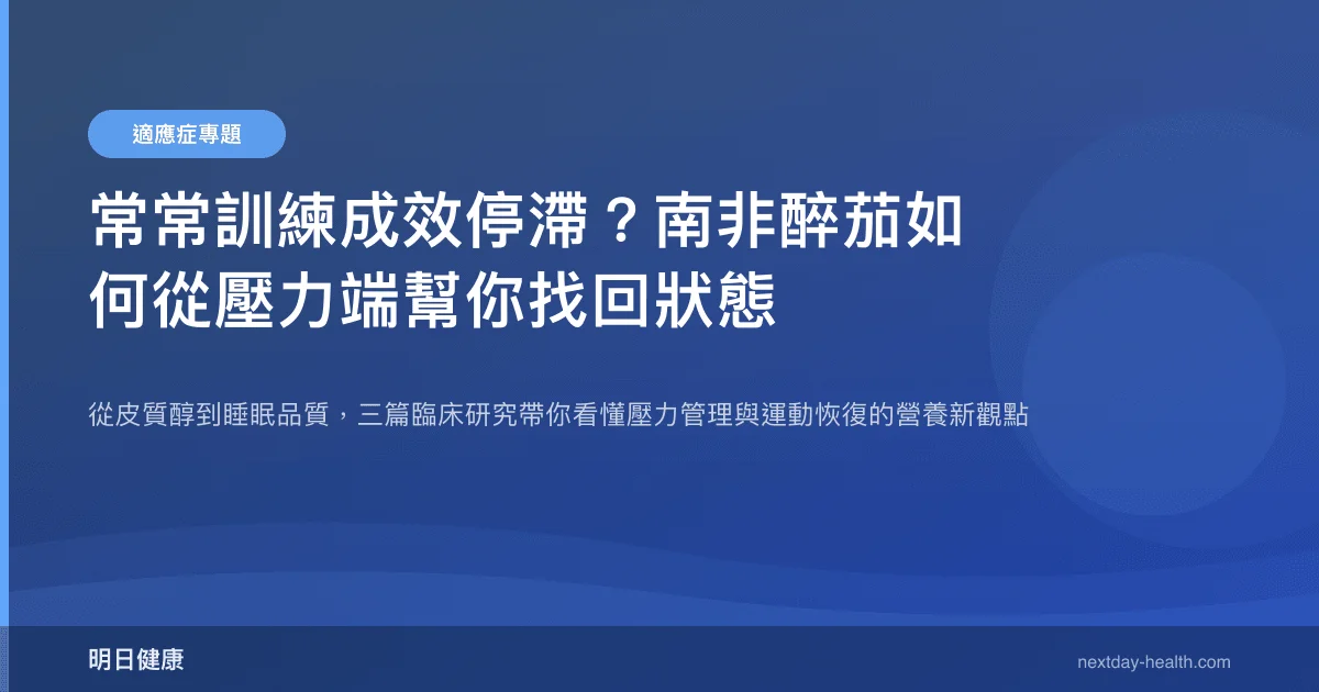 它跟運動的關聯並不是「吃了馬上跑更快」,而是透過壓力管理這條間接路徑來發揮作用。邏輯是這樣的:壓力荷爾蒙皮質醇長期偏高 → 睡眠品質變差 → 身體恢復變慢 → 訓練效果打折。如果南非醉茄能幫你把壓力這一端管好,恢復和表現自然有空間改善。