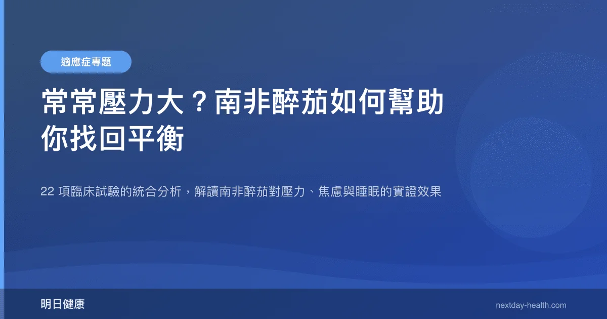 - 22 項隨機對照試驗統合分析證實,南非醉茄能顯著改善壓力、焦慮與憂鬱症狀(Alsanie et al., 2026)