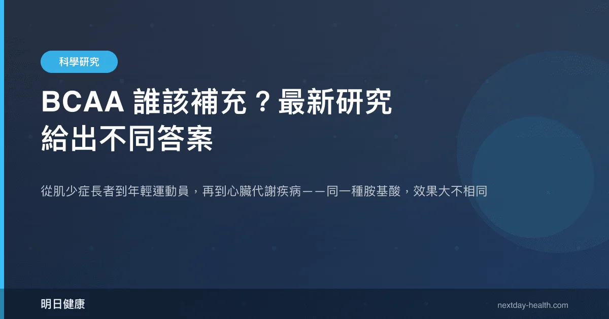 BCAA(支鏈胺基酸)是指白胺酸、異白胺酸與纈胺酸三種必需胺基酸的總稱。它們無法由人體自行合成,需從飲食攝取。近年研究顯示,BCAA 的效果因族群而異。同樣的補充策略,在不同人身上可能出現截然不同的結果。