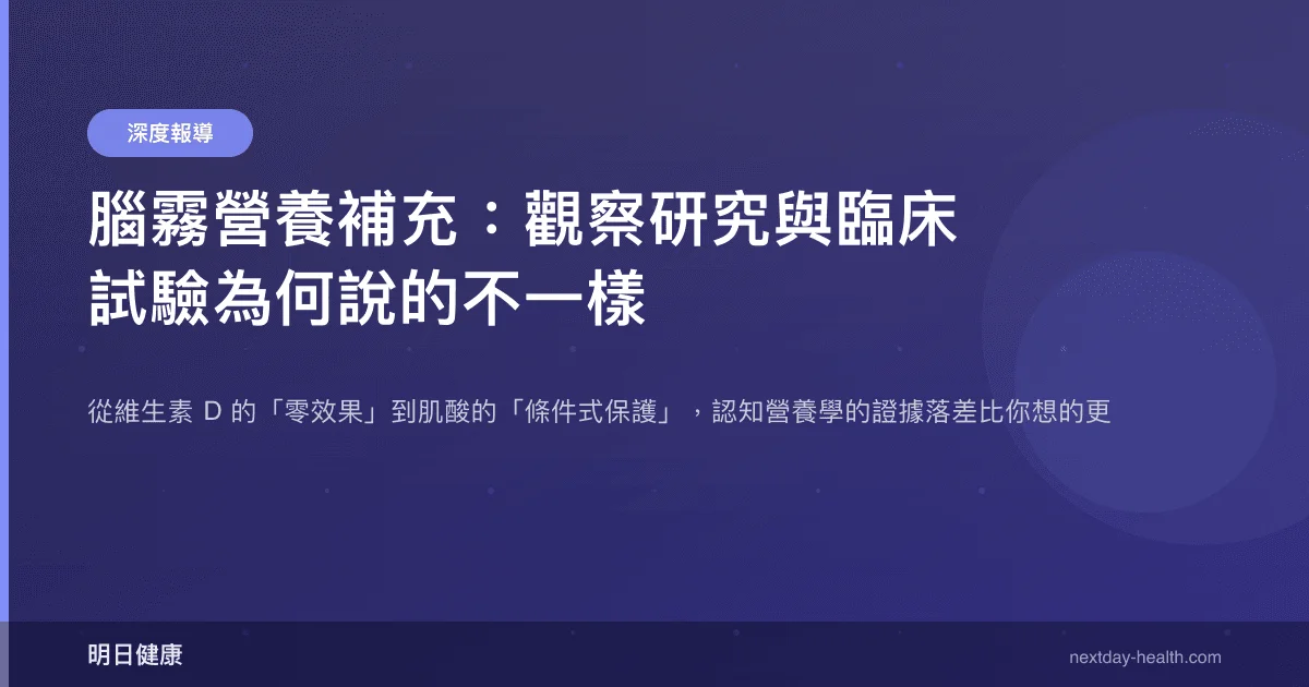 台灣、日本、新加坡等地的健康食品市場正快速擴張,「腦力」「清晰思考」等訴求的產品數量逐年增加。然而,本文回顧的三篇研究揭示一個結構性問題:營養補充品的行銷宣稱,往往建立在觀察性研究的關聯上,而非 RCT 的因果證據上。維生素 D 正是最鮮明的例證——流行病學數據看似完美,介入試驗卻歸零。