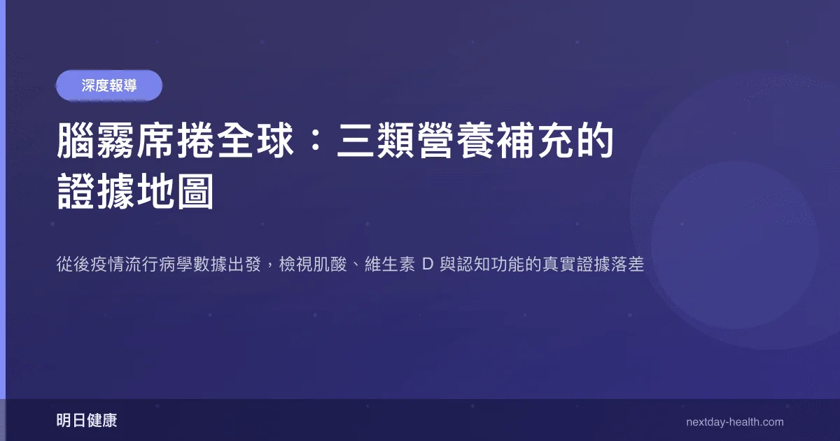 目前沒有任何單一營養補充劑被證實能有效「解決」腦霧。肌酸在睡眠不足等壓力狀態下可能有短期認知保護效果(d = 0.7–0.8),但在正常狀態下效果不顯著。維生素 D 的大型 RCT 則完全未發現認知改善效果。如果腦霧持續影響生活,請諮詢醫師進行專業評估。
