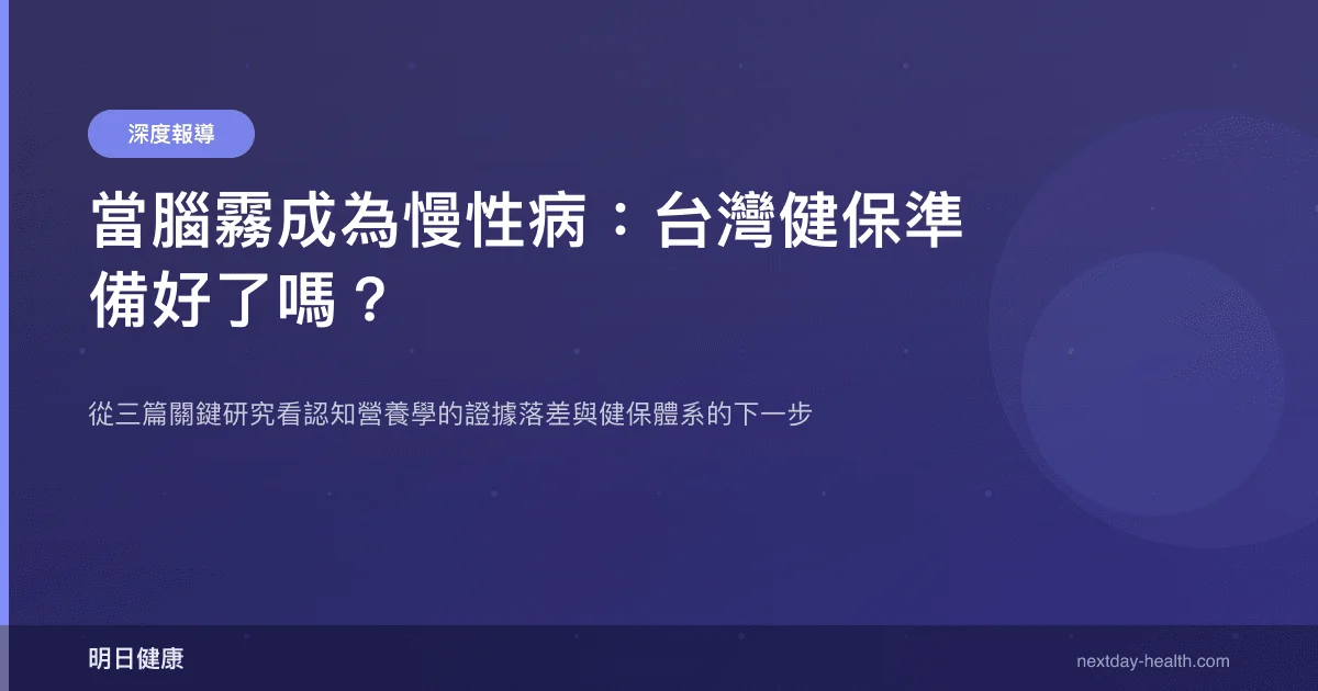 第二個挑戰是給付邏輯。健保給付的核心邏輯是「治療已確診的疾病」,而非「改善尚未構成疾病的功能下降」。營養介入——無論是肌酸、維生素 D 還是其他補充品——在現行體制下幾乎不可能獲得給付。即使未來有更強的 RCT 證據支持某種營養素對認知的保護效果,從「證據成立」到「納入給付」之間還有漫長的健保審議程序。