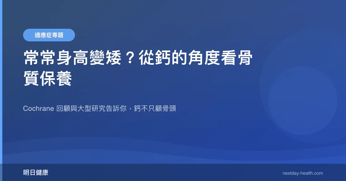 充足的鈣攝取有助於維持健康的血壓水平。這不是民間說法,而是 Cochrane——全球最權威的醫學實證資料庫——做出的結論。