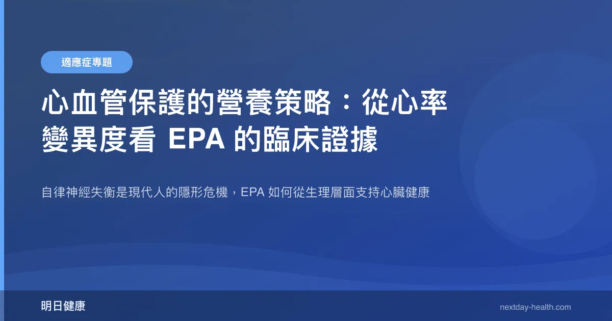在心血管保健的領域,多數人注意的是膽固醇和血壓。但近年來,「心率變異度」(HRV)這個指標正從專業醫學走入大眾視野——Apple Watch、Garmin、Oura Ring 都能測量它。HRV 反映的是你的自律神經平衡狀態,而這恰好是 EPA 能發揮作用的關鍵場域。