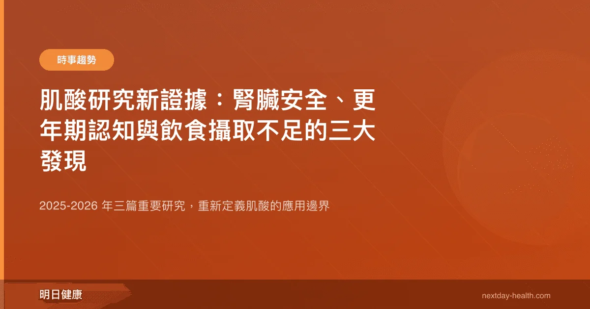 肌酸(creatine)是指一種由精胺酸、甘胺酸與甲硫胺酸合成的含氮有機酸,長期以運動增補劑聞名。然而,2025 至 2026 年間發表的三篇研究,正將肌酸的科學討論從健身房帶向腎臟科、神經科與營養流行病學。