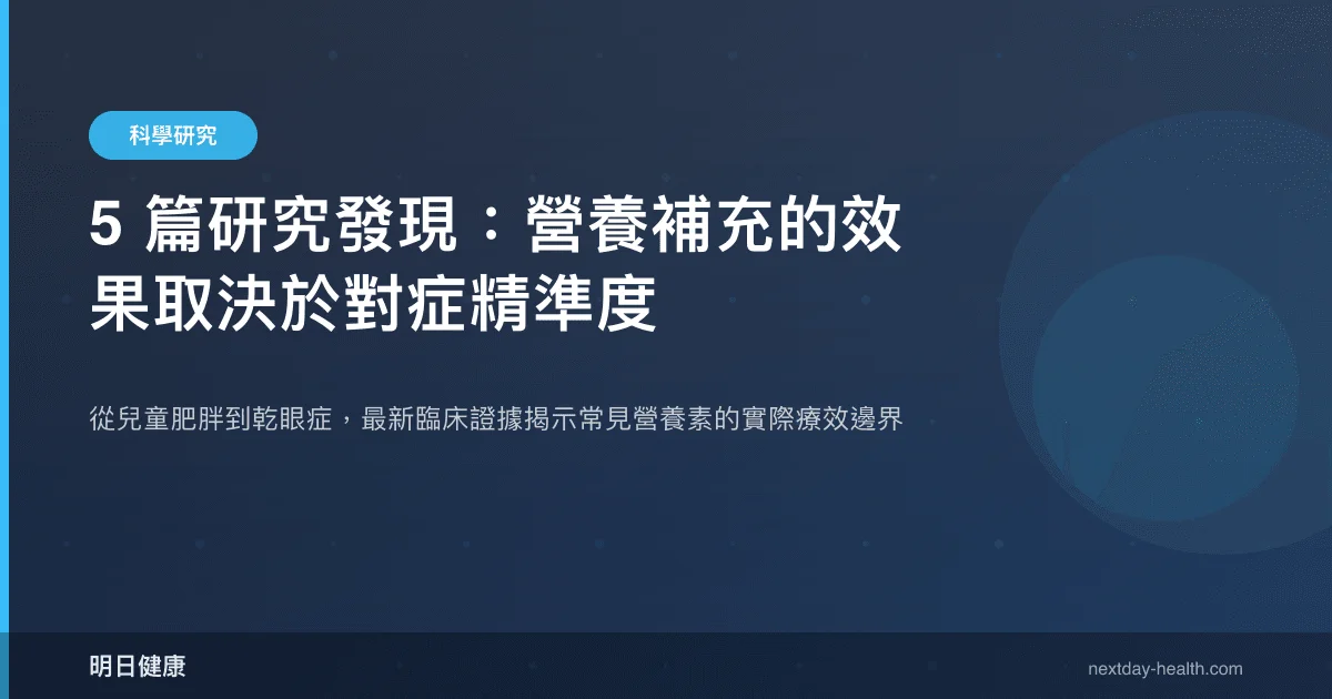 值得注意的是,該研究發現各補充劑之間的效果異質性相當高,年齡相關的療效差異也需要進一步釐清。這提醒我們,即使是證據等級較高的統合分析,在將成人研究結論直接套用到兒童族群時仍須審慎。