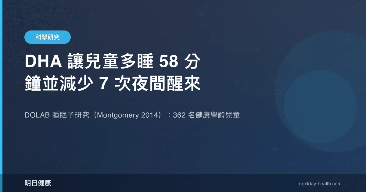兒童睡眠不足是現代公衛議題中日益受到關注的問題,與學習成效低落、情緒調節困難及長期代謝風險密切相關。然而,兒童睡眠品質的營養決定因子尚未被充分研究。Montgomery 等人於 2014 年在《Journal of Sleep Research》發表的 DOLAB 睡眠子研究(PMID: 24605819),是首次以隨機對照試驗設計結合客觀睡眠量測工具,探討 DHA 補充對健康學齡兒童睡眠的影響,其結果為 Omega-3 與兒童睡眠的關聯提供了突破性的實證基礎。
