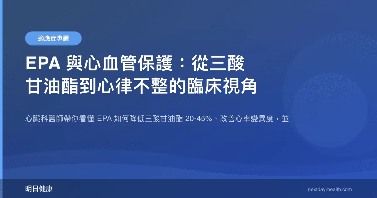 三酸甘油酯(TG)偏高不像膽固醇那樣受到大眾關注,但在臨床上它是獨立的心血管風險因子。我在門診常遇到 TG 在 200-500 mg/dL 之間的患者——這群人正好是 EPA 介入效果最明確的族群。