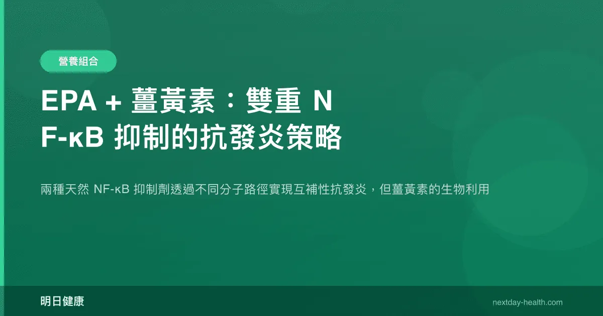 | 作用時間軸 | 需數週整合進入細胞膜磷脂質後發揮最大效應 | 體外研究顯示數小時內即可抑制 NF-κB;但體內受限於生物利用率 | EPA 提供基礎性膜層級保護,薑黃素提供即時轉錄層級抑制 |