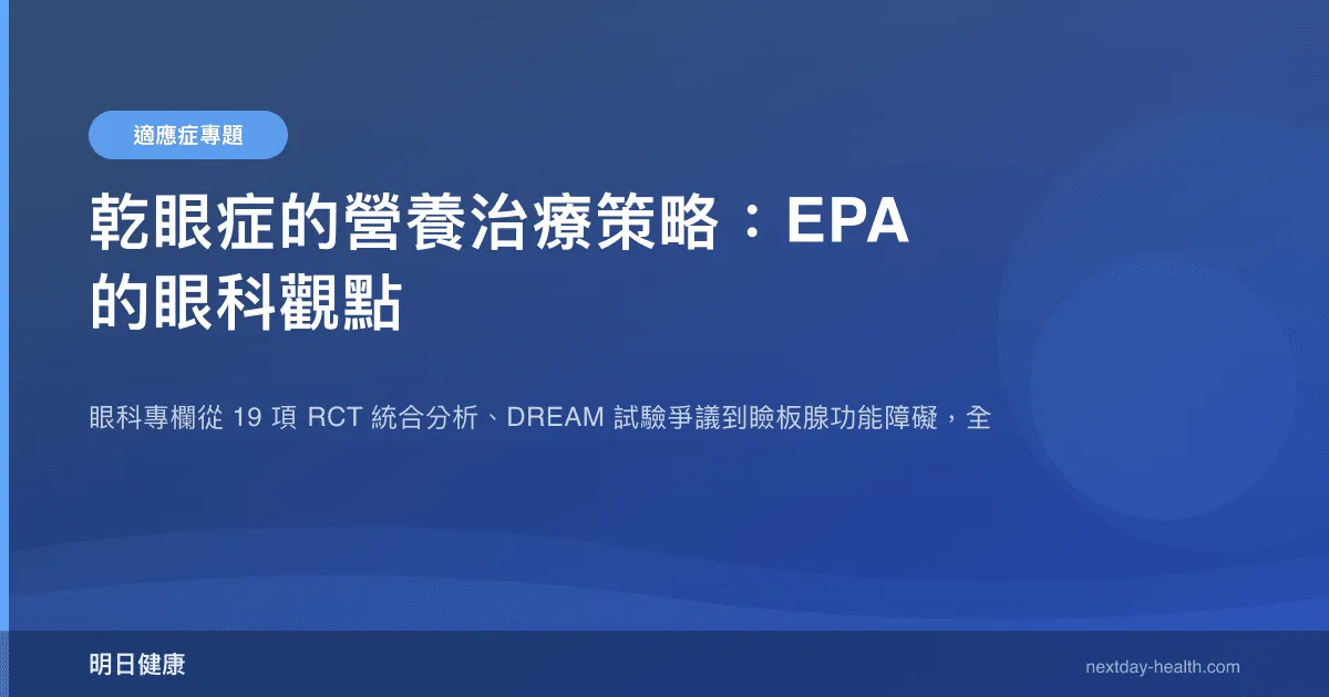 面對這個趨勢,許多患者問我:「除了點眼藥水,還能怎麼辦?」這個問題帶我們進入乾眼症的營養治療領域,而 EPA 正是目前證據最豐富的營養素之一。