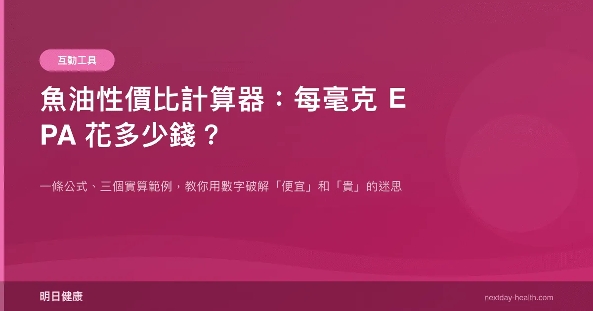 魚油的真正成本不在於一瓶多少錢,而在於你每攝取 1 毫克 EPA,花了多少錢。這篇文章教你一條簡單公式,3 分鐘算出任何魚油產品的「真實性價比」,不再被標價欺騙。