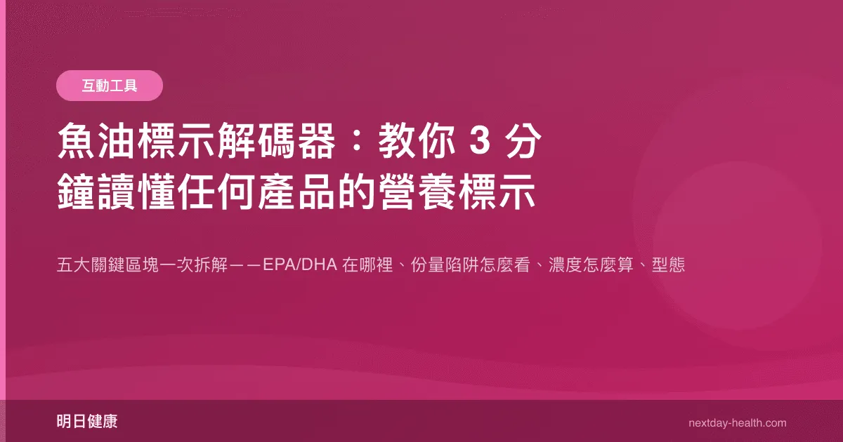其實,魚油的營養標示並不難讀,只要你知道該看哪裡、忽略哪裡。這篇文章用「解碼器」的概念,帶你在 3 分鐘內完整拆解任何一瓶魚油的營養標示,從此不再被行銷話術矇騙。