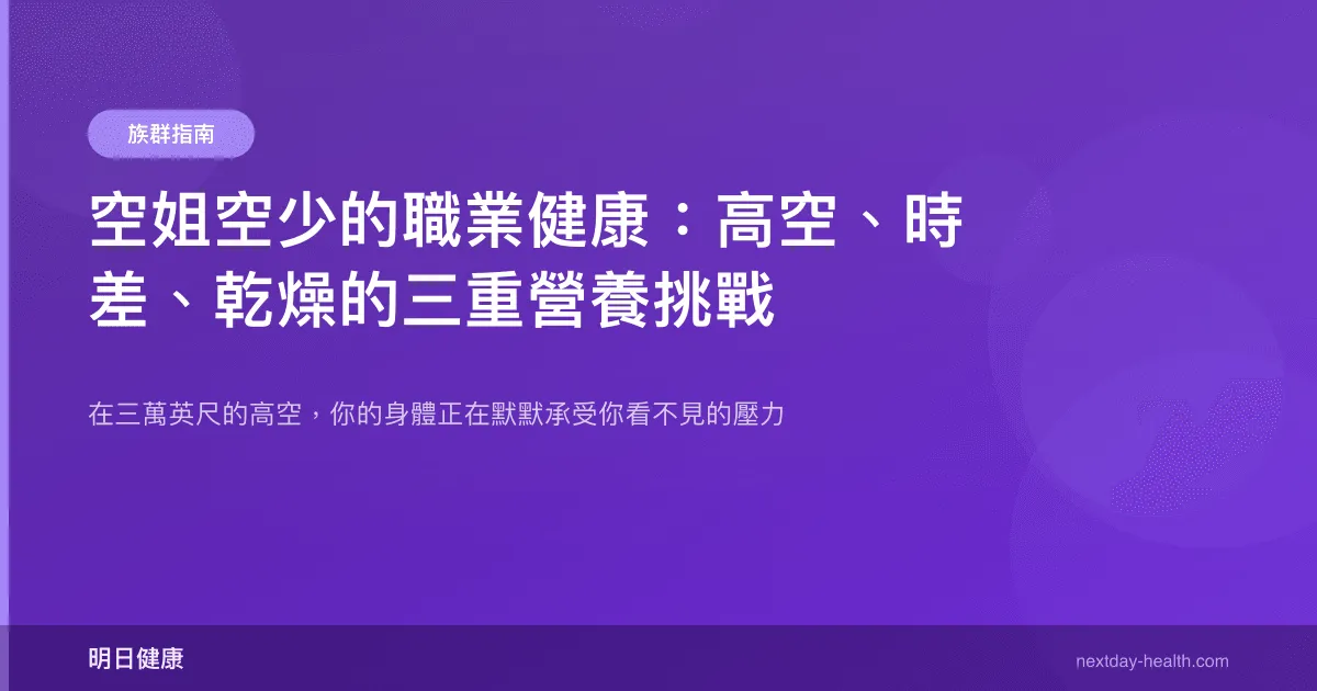 更麻煩的是,這些壓力不是「偶爾一次」——你可能每個月要飛 60-80 小時,一年累積下來的時區切換、乾燥暴露、低氣壓時數,遠遠超過一般旅客。你的身體需要一套專屬於你這個職業的營養策略。