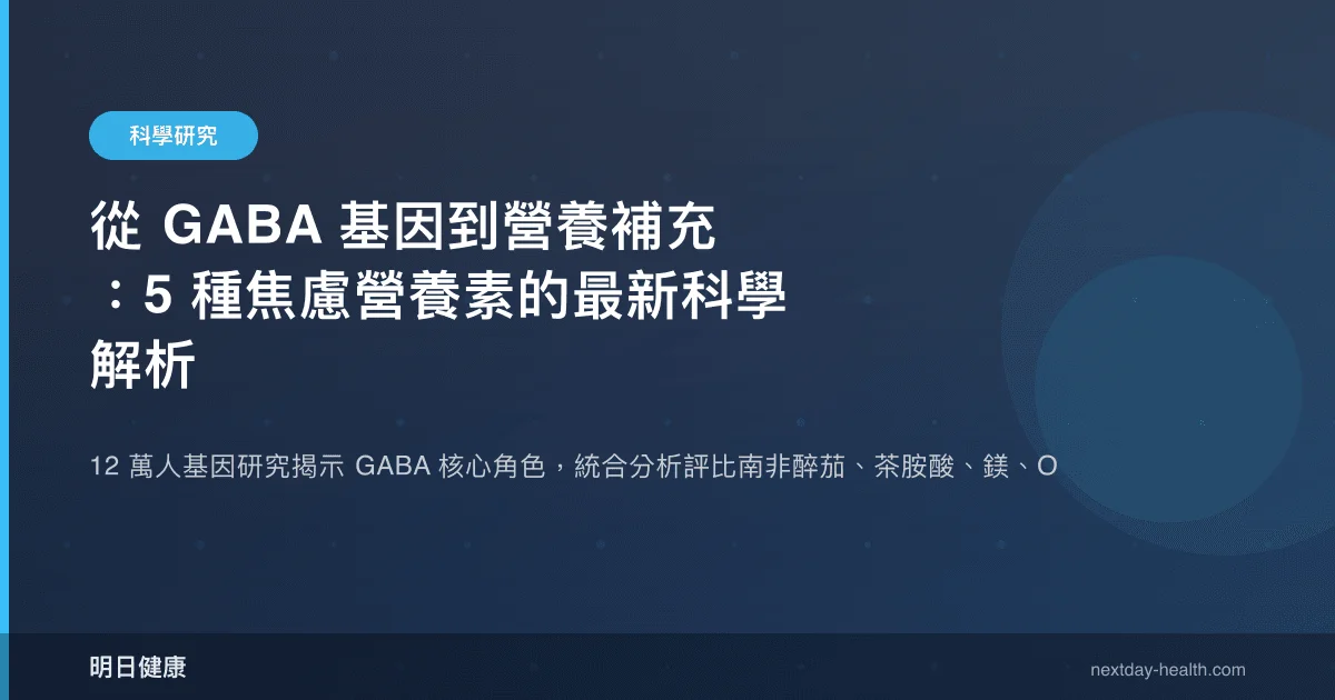 面對焦慮與壓力,許多人想知道「該補充什麼營養素」。市面上常見的選項包括南非醉茄、茶胺酸、鎂、GABA 與 Omega-3,但這些營養素的科學證據強度並不相同。2026 年一項突破性基因研究為焦慮症的生物機制提供了全新框架——GABA 系統被確認為核心角色,這讓我們得以重新檢視各營養素的作用路徑與臨床表現。