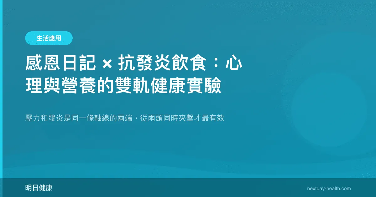 你有沒有想過,「心情不好」和「身體發炎」可能是同一件事的兩面?工作壓力大的時候,是不是特別容易嘴破、冒痘、腸胃不舒服?這不是巧合。壓力和發炎之間有一條隱形的高速公路,叫做壓力—發炎軸線。今天要聊的 30 天實驗,就是從這條軸線的兩端同時下手。