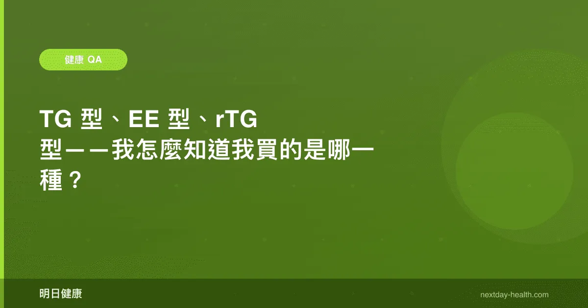 - 看價格帶:同樣的 EPA+DHA 總量下,rTG 型最貴,EE 型中等,TG 型因為濃度低需要更多顆所以總成本也不一定便宜