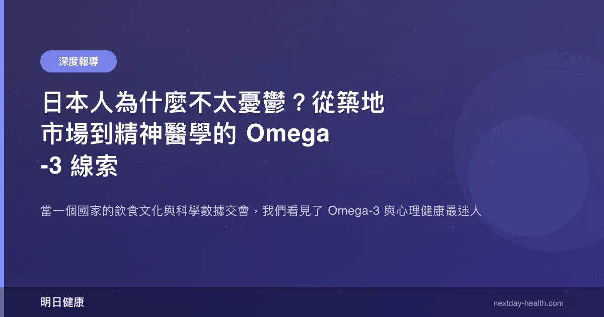 日本的精神醫學研究者並未旁觀這場全球性的學術討論。Matsuoka 等人(2015)在日本進行了一項針對重大災難倖存者的 RCT,探討 Omega-3 補充是否能預防創傷後壓力症候群(PTSD)的發展。Nishi 等人(2012, PMID: 22796513)則在日本職場族群中研究了 Omega-3 攝取量與心理健康指標的關聯。這些來自日本本土的研究,從不同角度驗證了 Omega-3 與心理健康之間的關聯,並為 Hibbeln 當年的跨國觀察增添了來自高魚類消費國家內部的微觀證據。