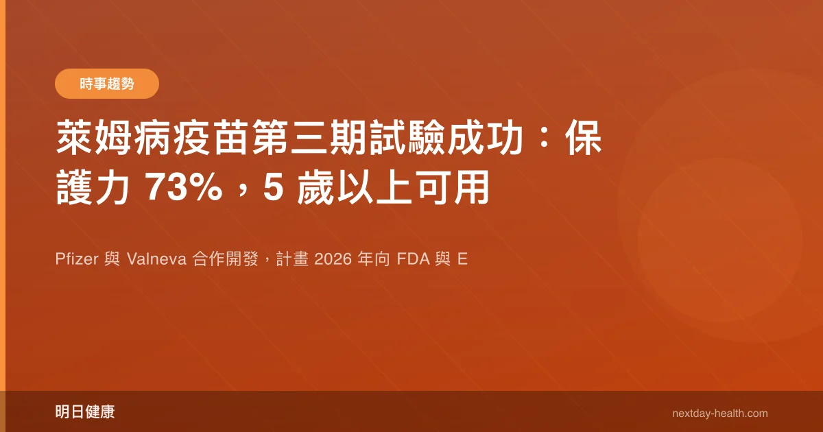 台灣萊姆病病例極少(年均不到 5 例),但對計畫前往北美、歐洲森林地區旅遊或工作的民眾而言,未來可能多一個預防選項。Pfizer 計畫 2026 年向 FDA 與 EMA 提交上市申請。
