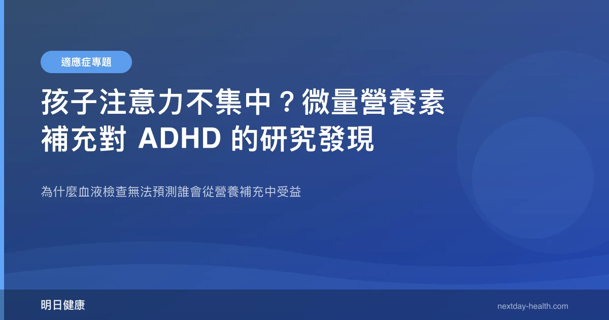 家裡有注意力不集中的孩子,許多家長都想過:「是不是缺了什麼營養?」這個直覺很自然——如果孩子缺鎂、缺鋅、缺維生素 D,補上去是不是就會改善?但一項設計嚴謹的隨機對照試驗告訴我們,事情沒有這麼簡單,也沒有這麼絕望。