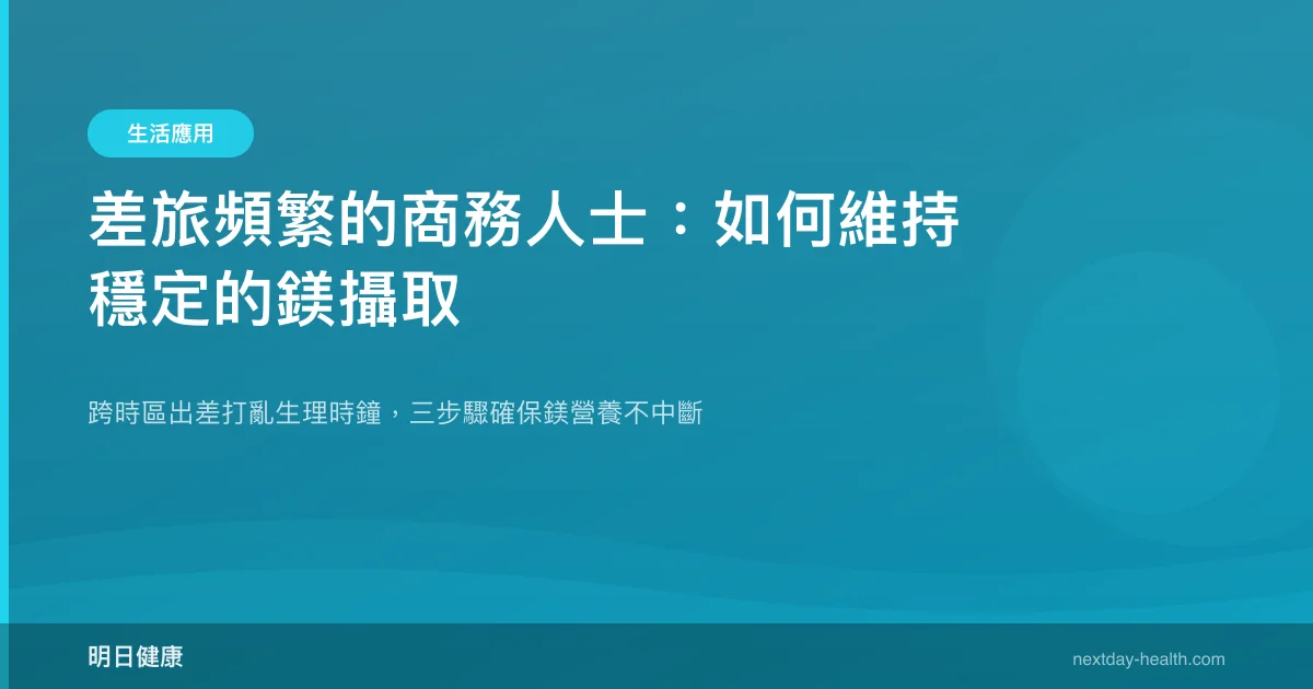 你是否經常在機場候機室裡匆忙吃完一份三明治,就趕往下一個會議?研究顯示,生物時鐘紊亂與鎂代謝密切相關,頻繁跨時區移動的商務人士正是鎂流失的高風險族群(Durlach et al., 2002)。這篇指南將用三個步驟,幫助你在忙碌差旅中維持穩定的鎂攝取。