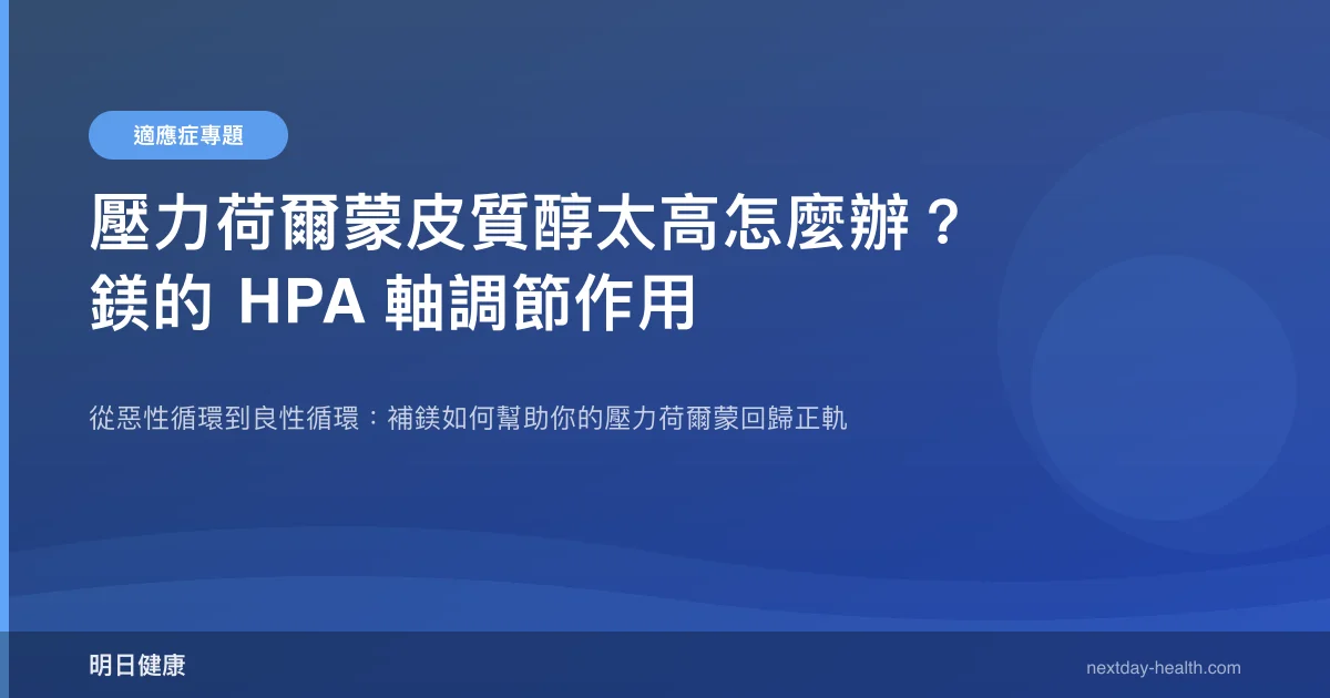 但也必須強調:鎂是輔助手段,不能取代壓力管理的根本策略(如認知行為治療、作息調整、運動)。皮質醇長期偏高若伴隨明顯身體症狀,應優先排除庫欣氏症候群等器質性疾病。