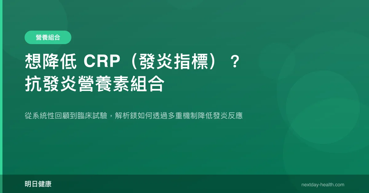 - 系統性回顧證實鎂補充可顯著降低 CRP 水平,但對氧化壓力指標的直接效果尚無定論。
