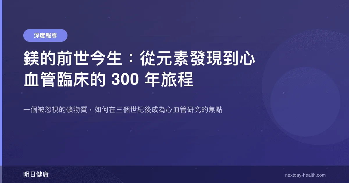鎂的臨床價值正被重新評估——2025 年發表於《Hypertension》的統合分析納入 49 項隨機對照試驗,確認每日補充 ≥300 mg 鎂可顯著降低血壓,高血壓患者的效果尤為明顯。這個結論看似簡單,背後卻是一段跨越三個世紀的曲折旅程。