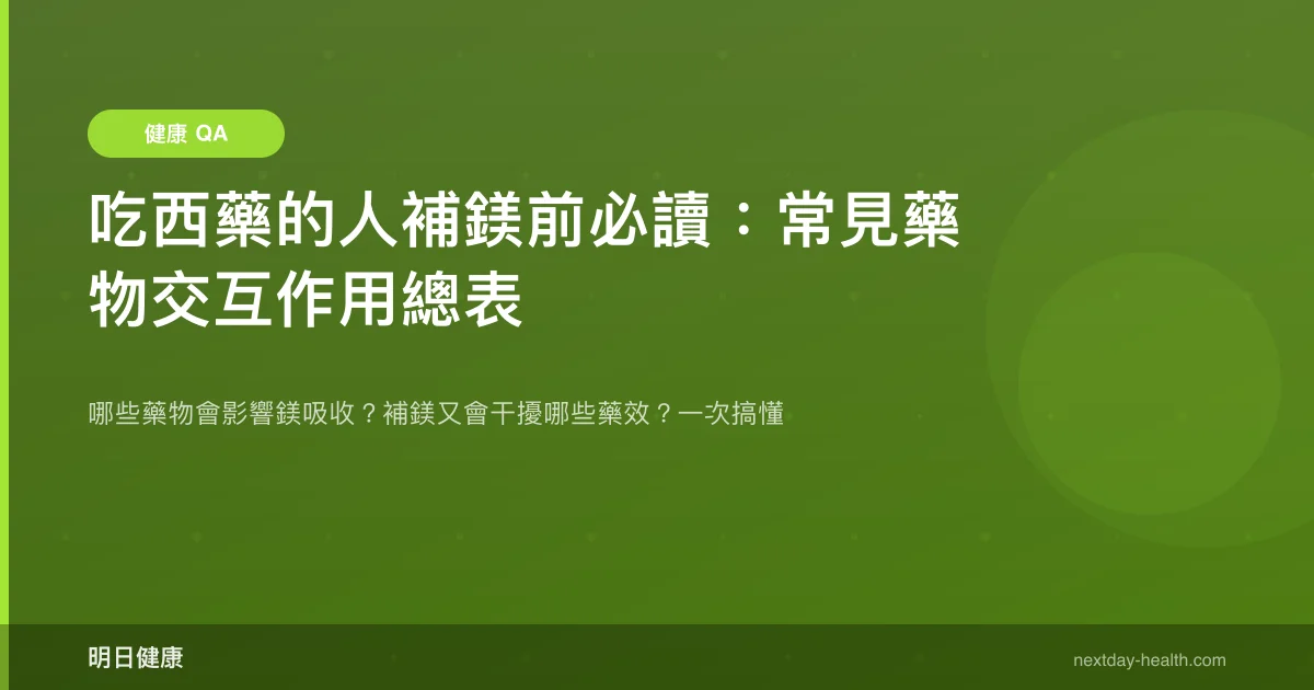 補鎂前先看你的藥單——至少有六大類常見西藥會影響體內鎂的濃度,搞錯時機或劑量可能讓藥效打折,甚至增加副作用風險。