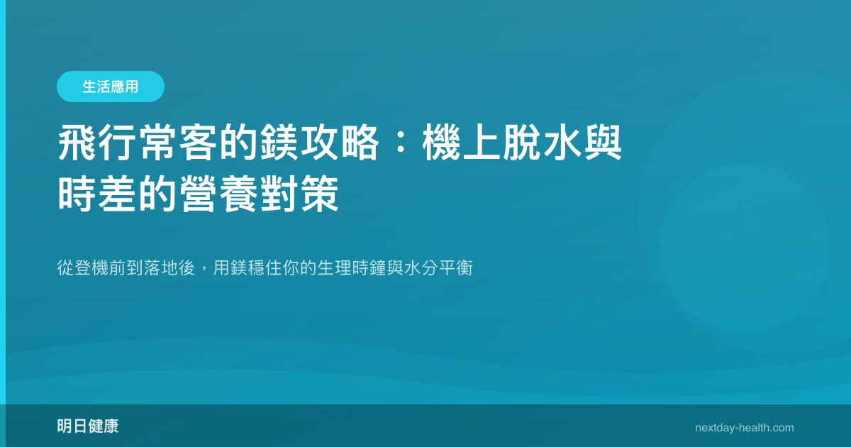 - 三步驟補鎂策略:登機前建立儲備→機上對抗脫水→落地後加速時鐘重設