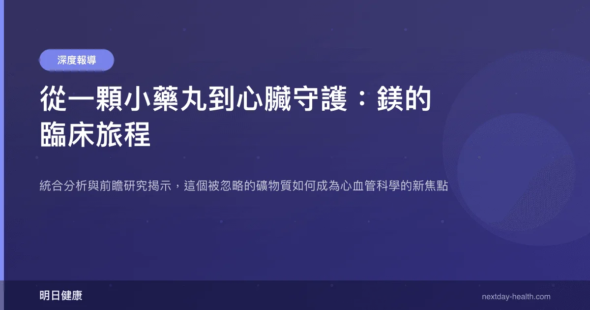 但後來我才知道,鎂是人體內參與超過 300 種酵素反應的礦物質,從肌肉收縮、神經傳導到心臟節律,幾乎無處不在。然而在臨床上,它長期被當成配角,直到近年一連串大型研究才讓科學界重新正視它的角色。這篇文章是我追蹤這些研究後整理出來的故事——關於鎂如何從一個「被忽略的營養素」,走到心血管醫學的聚光燈下。