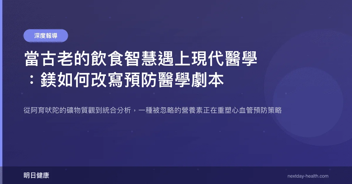 這不是巧合。當現代營養科學開始用隨機對照試驗和統合分析重新檢視這些古老的飲食建議時,一個清晰的輪廓正在浮現:鎂,這個地殼中第八豐富的元素,可能是心血管預防醫學中最被低估的角色之一。