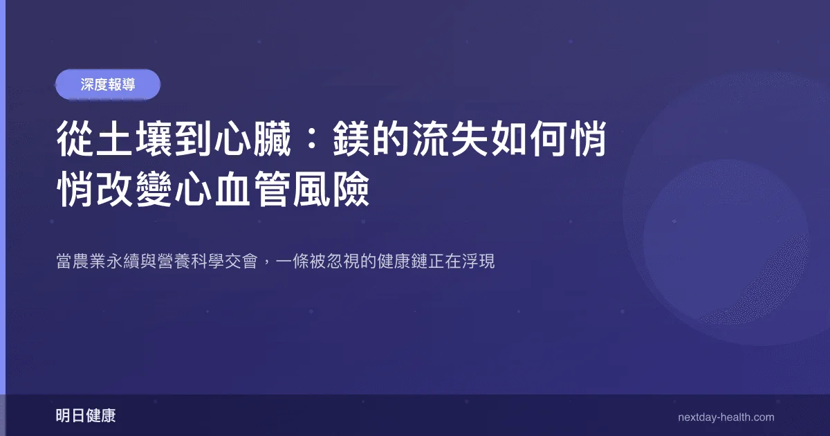 台灣營養調查長期顯示,國人鎂的平均攝取量低於每日建議量。當我們討論心血管疾病預防時,往往聚焦於藥物、運動和減鹽,卻較少從食物系統的源頭思考——我們種出來的食物,是否仍然能提供身體所需的基本礦物質。
