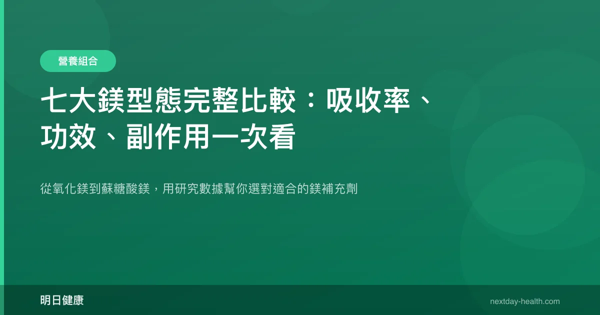 食物中的鎂受食物基質影響,全穀類、堅果、深綠色蔬菜是良好來源,但植酸和草酸等成分可能降低吸收率(Rondón, 2026)。補充劑的優勢在於劑量精確可控,但食物來源鎂伴隨其他微量元素和膳食纖維,各有優勢。理想策略是以飲食為基礎,不足再以補充劑補齊。
