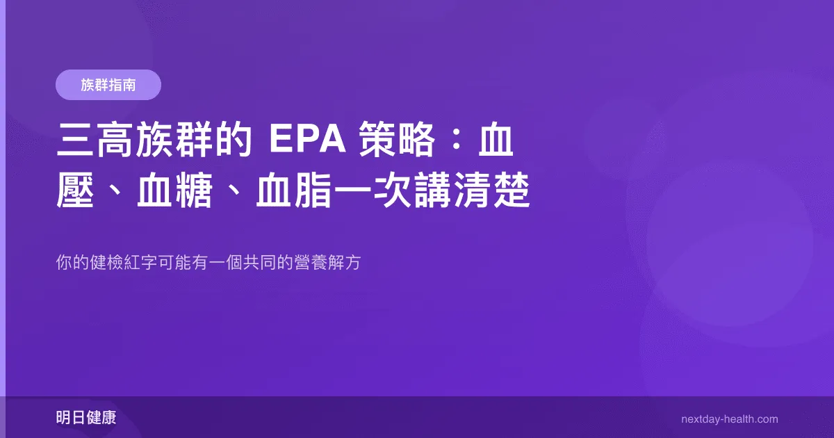 - EPA 1,000-2,000 mg/天(選高 EPA 比例,避免 DHA 升 LDL)