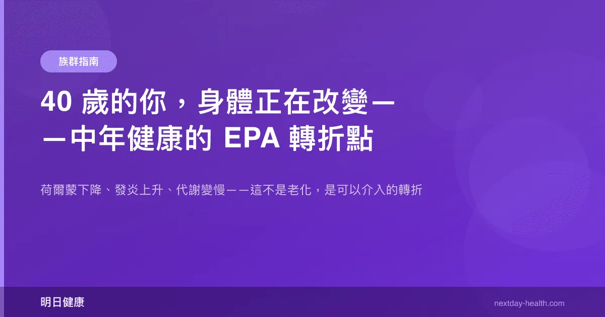 40 歲不是衰老的起點,而是有意識地照顧自己的起點。你的身體在改變,但改變不等於惡化——前提是你願意回應它的信號。EPA 是這個回應中的一塊拼圖,不是全部,但是很重要的一塊。你的人生下半場才剛開始,給自己打好基礎,後面的路走起來會輕鬆得多。