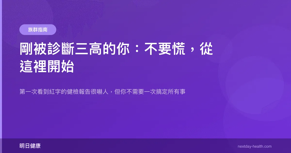 這篇文章不會叫你「馬上開始運動、馬上改變飲食、馬上吃一堆保健食品」——因為你現在最不需要的就是更多的壓力。我們一步一步來。