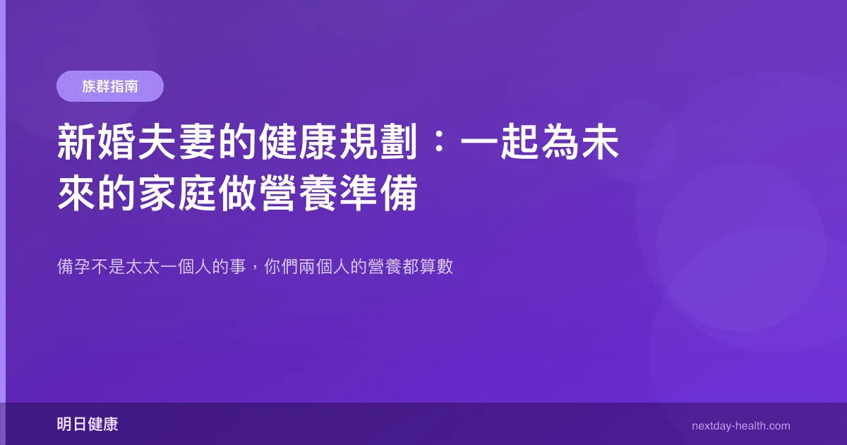 所以,理想的營養準備至少在計畫受孕前 3-6 個月開始。新婚階段剛好是最自然的起始點——不一定馬上要懷孕,但先把身體準備好,時機到了就不用手忙腳亂。