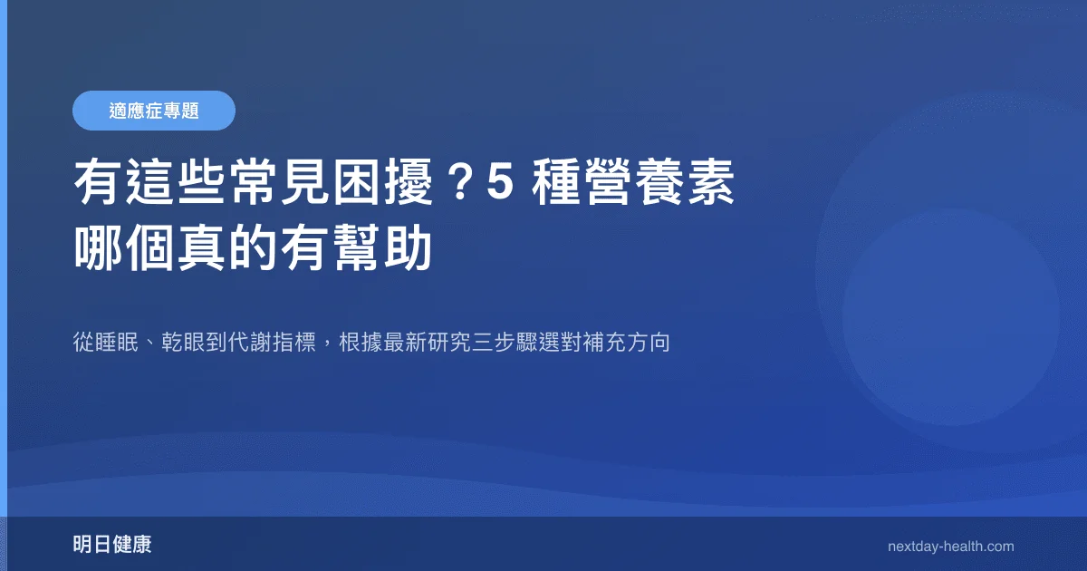 你睡不好、眼睛乾、還擔心體重和心血管指標?走進藥妝店,架上營養品讓人眼花撩亂。到底哪些有研究撐腰、哪些只是行銷話術?這篇指南整理 5 篇最新研究,幫你三步驟對號入座。