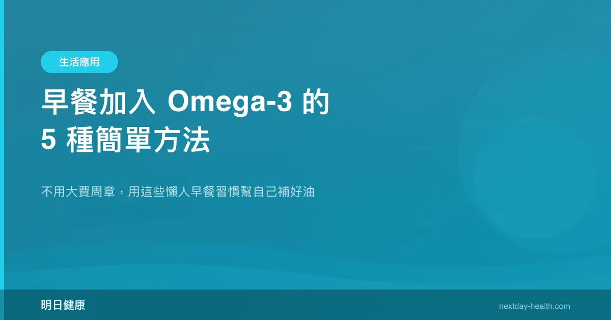 最好的策略是輪著吃。平日忙的時候用方法一(魚油 + 蛋),週末有時間就做方法二或五。不吃魚的日子用方法三或四補充植物性 Omega-3。重點不是哪一種最厲害,而是養成早餐就開始補充 Omega-3 的習慣。