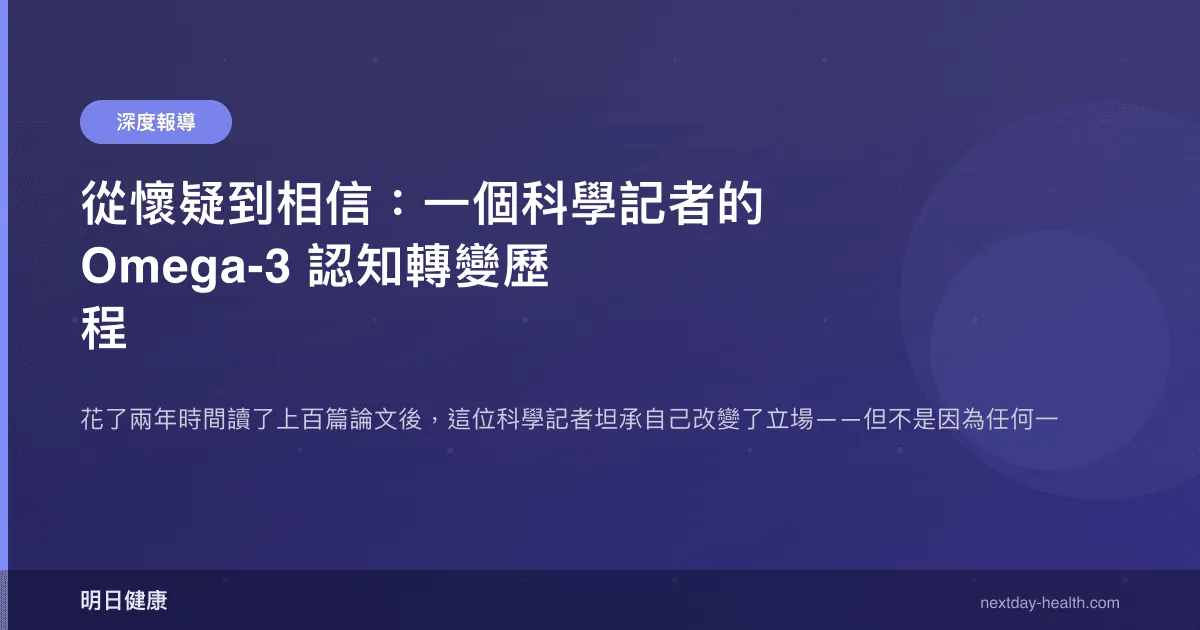 我必須先向讀者坦白一件事:三年前,如果有人告訴我「你應該每天吃魚油」,我會用一種禮貌但帶著距離的微笑回應,然後在心裡默默把對方歸類到「保健品信仰者」的陣營。身為一個受過科學訓練、在主流媒體跑科學與健康線超過十年的記者,我對營養補充劑的態度可以用四個字概括:本能懷疑。