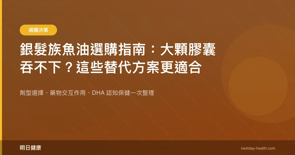 銀髮族選購魚油的關鍵在於「吞得下、不衝突、DHA 夠」三大原則。先解決劑型問題,再確認藥物安全性,最後選擇高 DHA 配方。如果不確定自己或家中長輩適不適合補充魚油,帶著目前的用藥清單去問藥師,五分鐘就能得到答案。