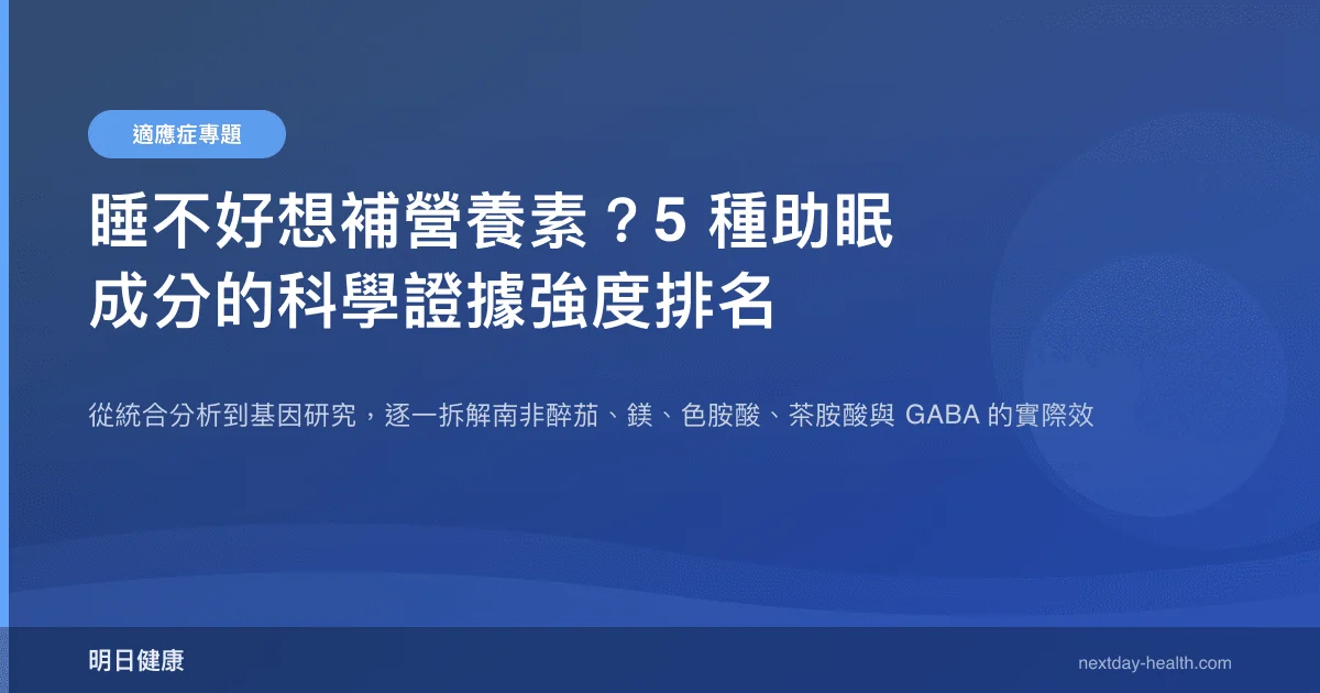 市面上標榜「助眠」的營養品琳瑯滿目,從南非醉茄到 GABA 軟糖,每一種都號稱能讓你一夜好眠。但真正攤開科學文獻,這五種熱門成分的證據強度其實差距不小。這篇文章用三個步驟,帶你從研究等級判斷哪些值得嘗試、哪些還需要觀望。