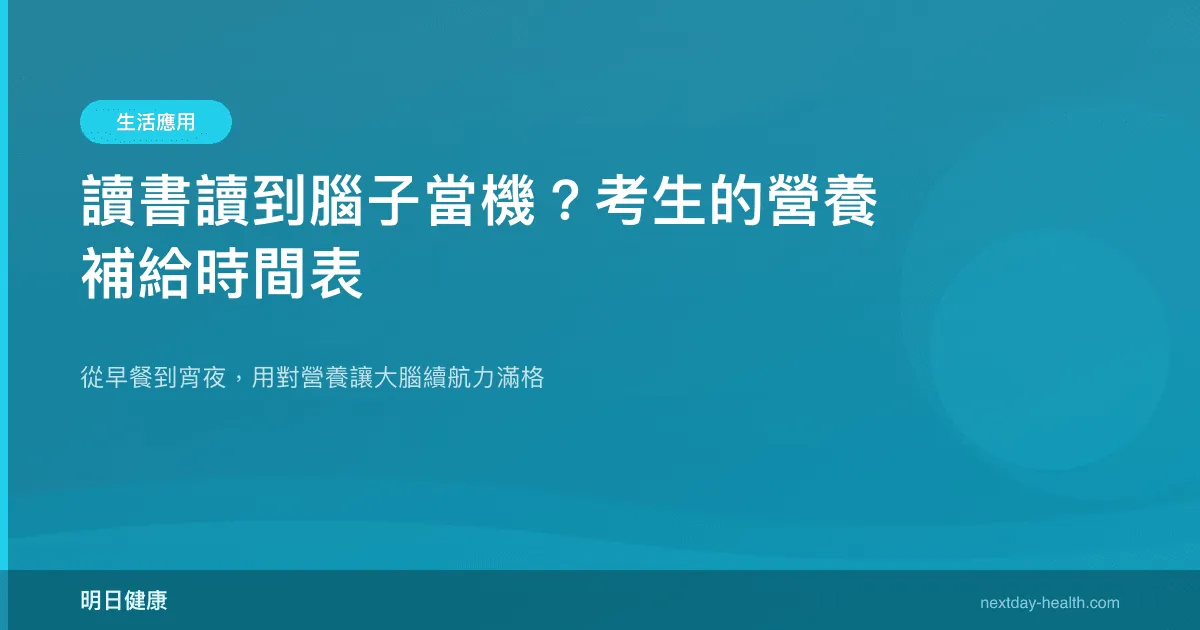 你的大腦只佔體重的 2%,卻消耗了全身 20% 的能量。它是一台高性能引擎,但如果你給它的燃料品質不好、補給時間不對,它就是會當機。今天我們來聊聊,考生應該怎麼安排一天的營養,讓大腦在需要的時候保持最佳狀態。