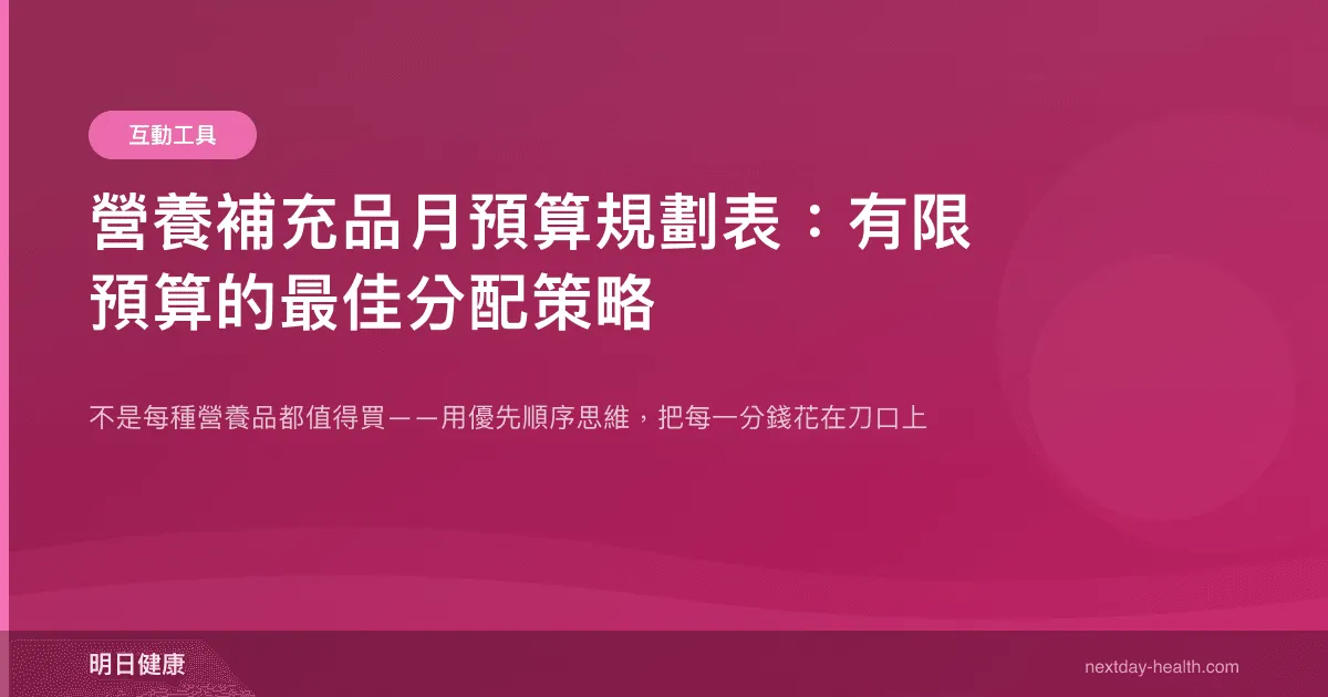 | 營養素 | 為什麼優先 | 建議劑量 | 月預算 | 備註 |