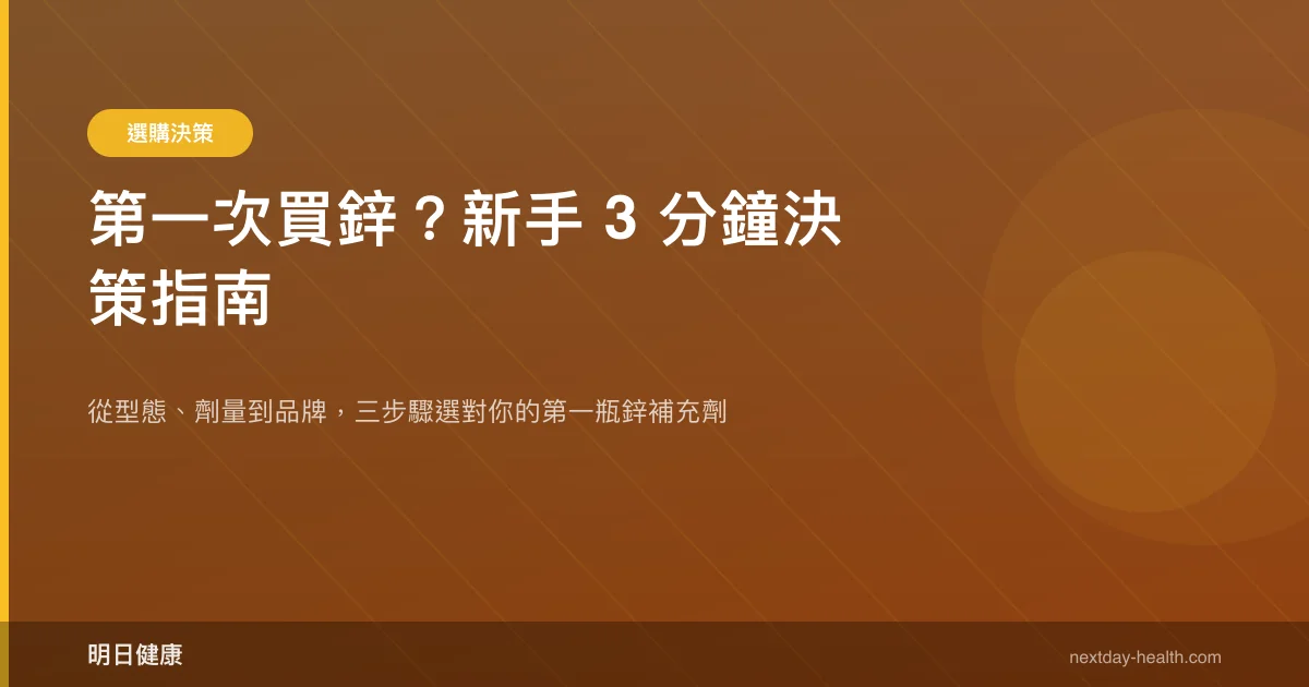 鋅是人體必需的微量礦物質,參與超過 300 種酵素反應。面對貨架上琳瑯滿目的鋅補充劑,新手最常問的問題是:「到底該怎麼選?」這篇指南用三個步驟,幫你在 3 分鐘內做出決定。